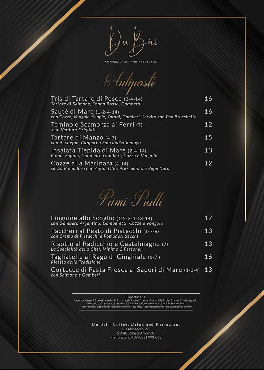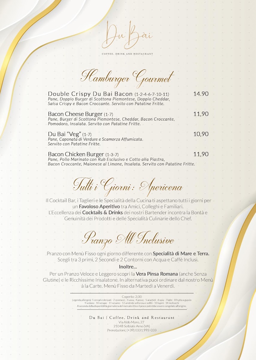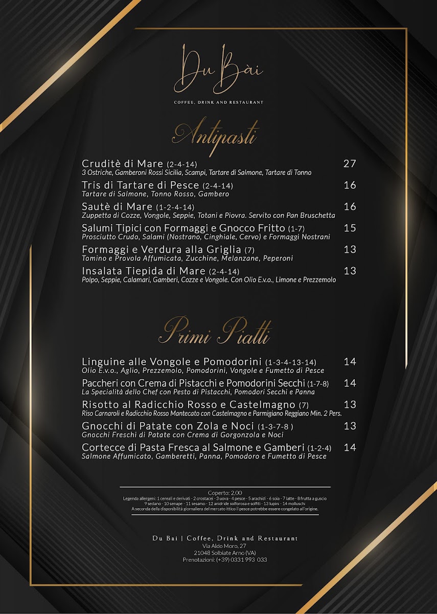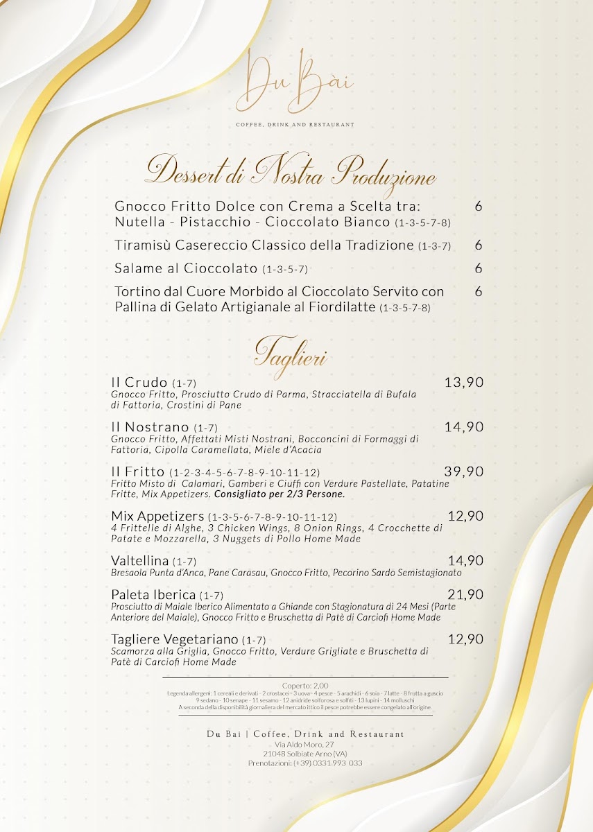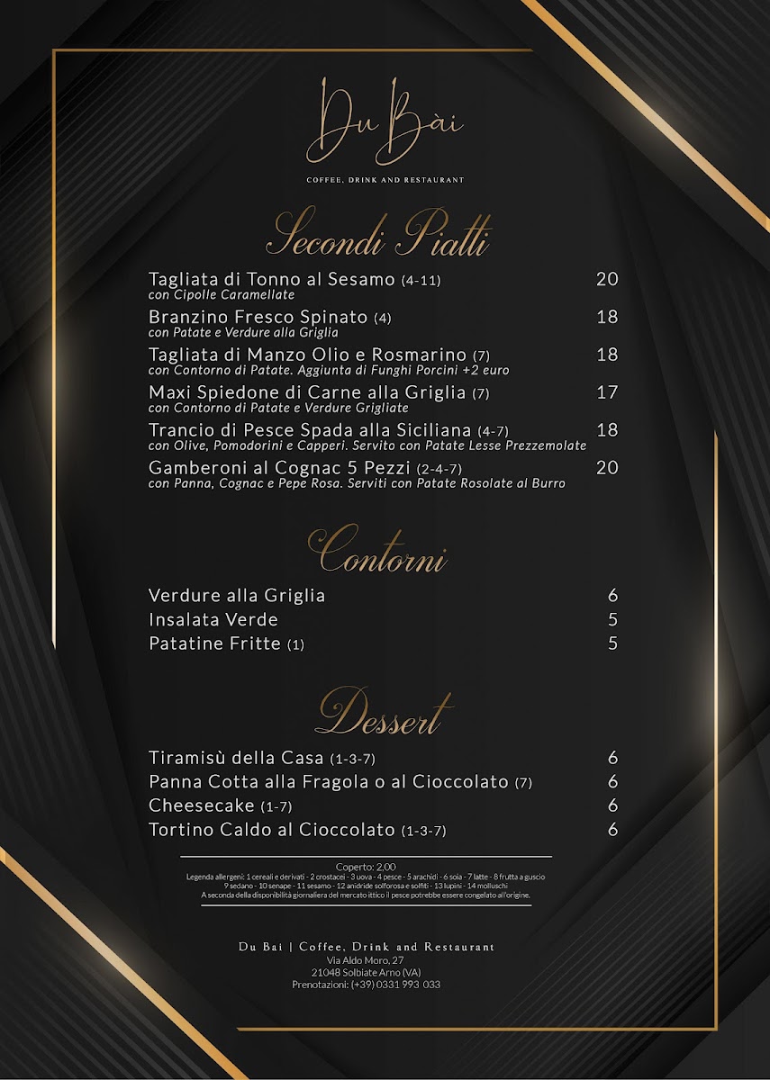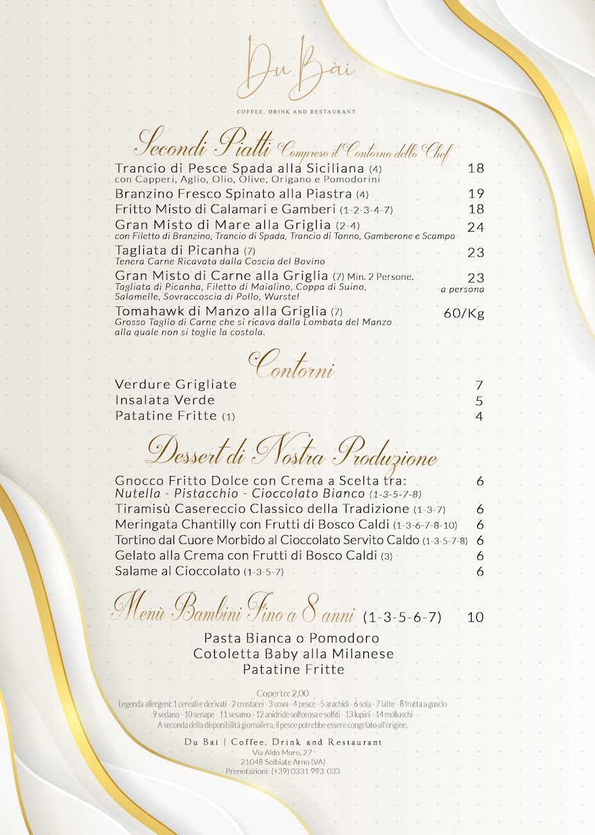 Welcome to DU BAI Coffee, Drink and Restaurant, where culinary delights await you in the heart of Solbiate Arno, Italy. The menu features a diverse à la carte selection that tantalizes the taste buds with offerings ranging from Antipasti and Primi Piatti to expertly crafted Secondi Piatti and delightful Desserts. For families, there is a dedicated Menù Bimbi, ensuring even the little ones can enjoy a satisfying meal. Enjoy a leisurely evening with the AperiCena EXTRA, perfect for unwinding after a busy day.